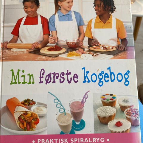 Min første kogebog er en kogebog til børn med praktisk spiralryg, der gør det nemt at have bogen åben på køkkenbordet. Bogen indeholder mere end 20 opskrifter med trin-for-trin vejledninger og billeder, som viser processen. Opskrifterne spænder fra brød og boller til varme retter, desserter og kager. Layoutet er farverigt med tydelige instruktioner og fotos af de færdige retter, så børn kan følge med i både tekst og billeder under madlavningen.