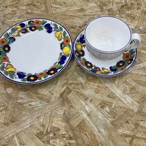 Smukt og klassisk stel fra Royal Copenhagen i serien Golden Summer / Gylden Sommer sælges. Stellet er brugt og har enkelte brugsspor, men ingen skår.