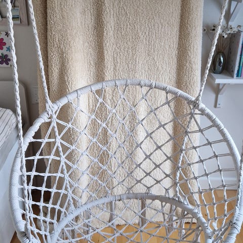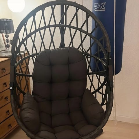 Hængestol i farven taupe. Er hængt op, men har aldrig været brugt til andet en opbevaring af bamser. Overskud fra teenageværelset.