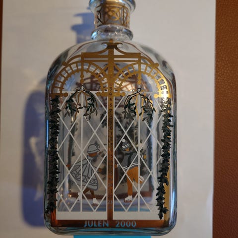 Original Holmegaard juleflaske designet af Michael Bang med dekoration af Jette Frölich.