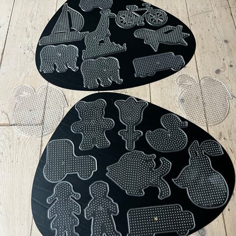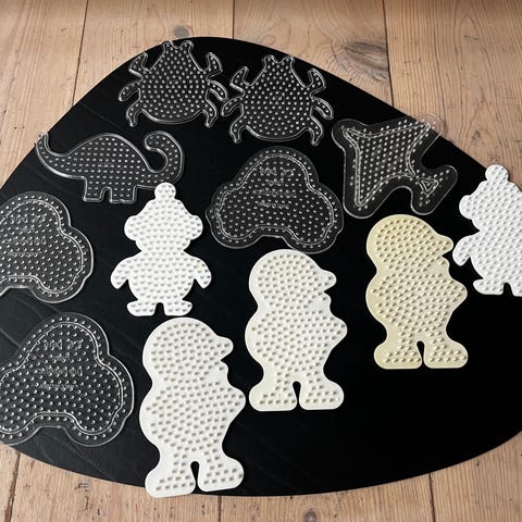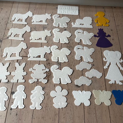Hama perleplader med forskellige dyr og figurer. Sættet indeholder flere motiver, blandt andet hest, løve, elefant, giraf, næsehorn, drage, blomst, menneskefigurer og andre dyrefigurer. Perlepladerne er beregnet til brug med Hama perler og kan anvendes til kreative perlemotiver. Velegnet til leg og kreative aktiviteter, hvor børn kan lave egne mønstre og figurer på pladerne.