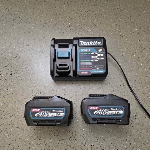 Makita oplader DC18RD med 2 stk 18V 5Ah batterier. Benyttet meget kort.