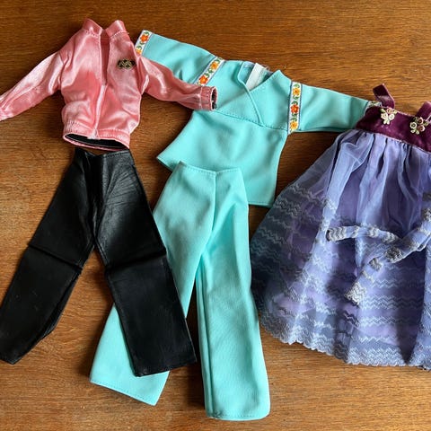 Tøjet er delvis originalt NANCY tøj, delvis hjemmestrikket.