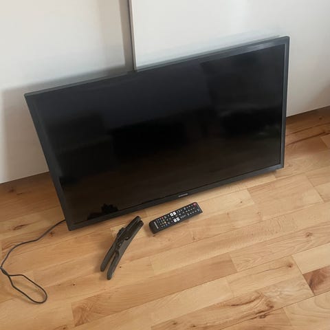 Samsung UE32D5727 tv på 32" i sort. Modellen er en Samsung Smart TV, som ses på skærmen. Bagsiden viser modelbetegnelsen UE32D5727RKXXE. Tv’et har forskellige tilslutningsmuligheder på bagsiden (se billeder for stik og porte). Medfølgende fjernbetjening ses på billederne. Velegnet som almindeligt tv til stue, soveværelse eller kontor, hvor der ønskes et 32" fladskærms-tv fra Samsung.
