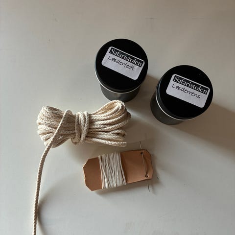 Der medfølger nitter og en dåse med læderfedt .