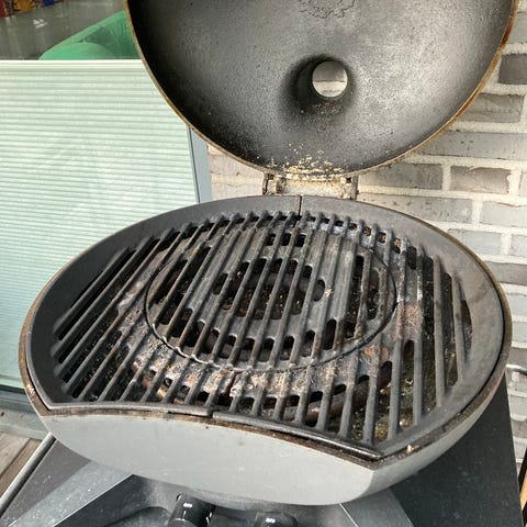 Morsø Forno Gas Medio gasgrill i grå farve. Rund kuppelformet gasgrill med låg og integreret gasbrænder. Grillen står på stabile ben og tilsluttes gas. Kan ses og afhentes i Kollund.