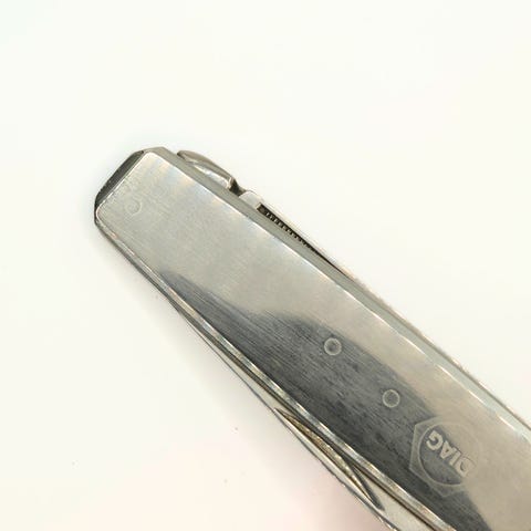 Den anden messing metal med indgraveret K.T.A.S. på skæfte stemplet Rustfri.