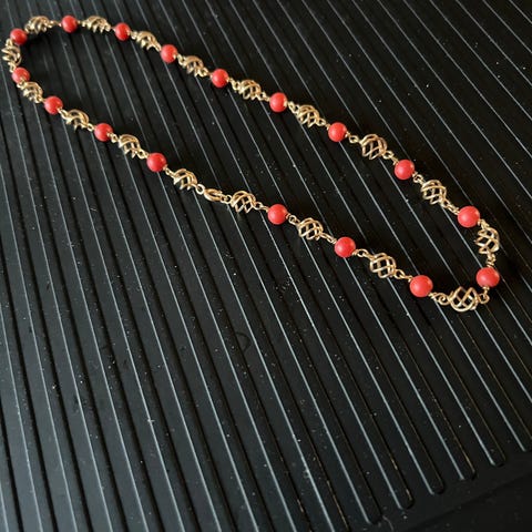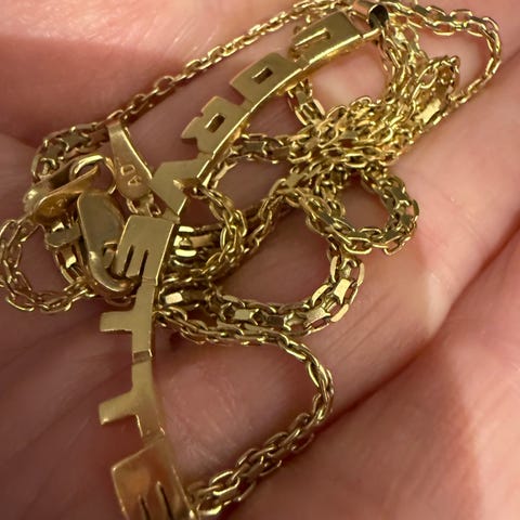 Halskæde i 14 karat guld med perler, længde 40 cm. Navnet er " Bur og Perle",