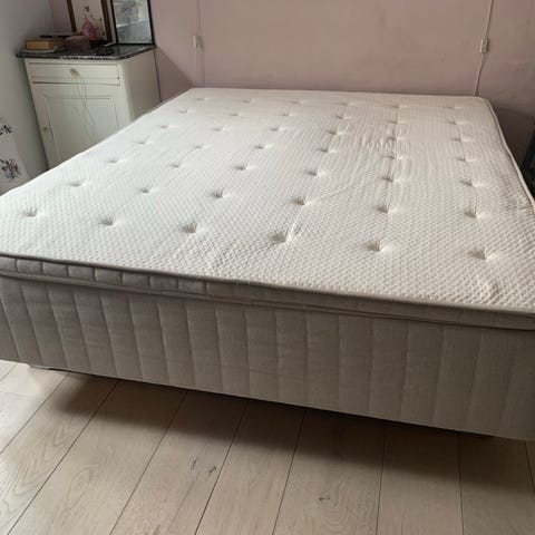Dobbeltseng 180x200cm, bestående af to boxmadrasser hhv IKEA Sultan Skaun (hårdhed fast) og Sultan Songli (hårdhed medium/blød).