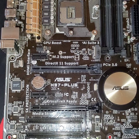 ASUS bundkort i mini-ITX format. Bundkortet har flere USB-porte på bagpanelet, lydtilslutninger, HDMI og DisplayPort samt netværksport. På billederne ses det monteret med en lavprofil CPU-køler og blæser. Velegnet til kompakte pc-byg med mini-ITX kabinetter. Yderligere specifikationer som sokkeltype, chipset og understøttet RAM-type fremgår ikke tydeligt af billederne og bør kontrolleres af køber.