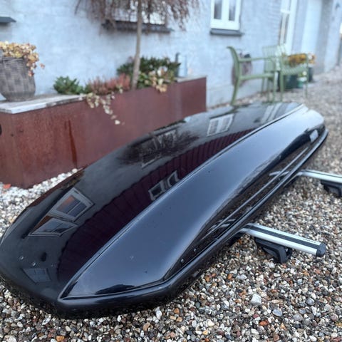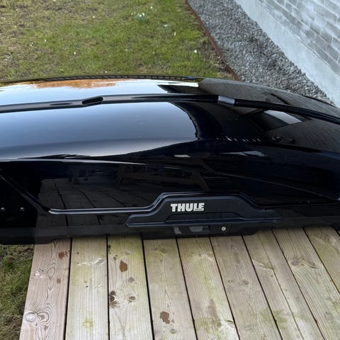 Thule Motion 200 tagboks i sort. Tagboksen er egnet til montering på tagbøjler på personbil og giver ekstra opbevaringsplads til bagage, udstyr eller lignende under kørsel. Modellen Motion 200 er en hardcase tagboks med aerodynamisk form og låg, der åbnes fra begge sider. Velegnet til transport af f.eks. kufferter, tasker eller sportsudstyr på bilens tag.175×86×46.....410 litre...2 sæt nøgler haves....super pris. Kun afhentning...