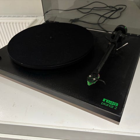 Ikonisk remdrevet hi-fi pladespiller med Rega Bias 2 phono cartridge. Har en minimalistisk sokkel, en tung glasplade og en præcisionskonstrueret tonearm.