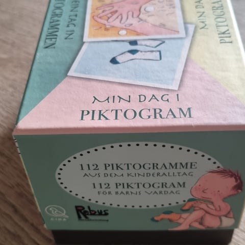 Ræbus Min dag i piktogrammer kortsæt med 112 piktogrammer til børns hverdag. Sættet består af små kort med enkle illustrationer af daglige rutiner som personlig pleje, påklædning og andre hverdagssituationer. Kortene kan bruges til at strukturere barnets dag, understøtte visuel kommunikation og skabe overblik over aktiviteter. Velegnet til brug i hjemmet, dagtilbud eller andre pædagogiske sammenhænge, hvor visuelle støttesystemer er relevante for børn.