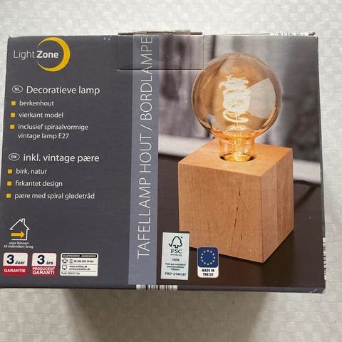 Snedker bygget bordslampe i genbrugstræ, med behagelig, passiv dæmpbar belysning, lavet i egetræ og 12V LED strip.