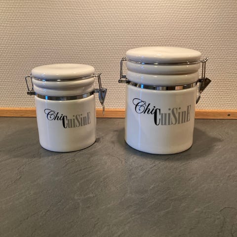 2 forskellige flotte hvide porcelæns beholdere med låg
