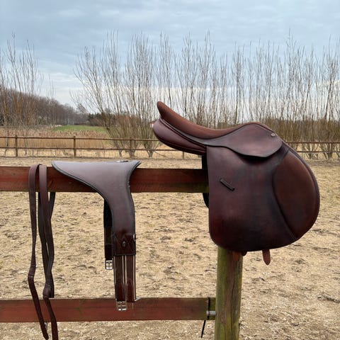 Sadlen fremstår pæn med almindelige brugsspor og en enkelt rem i stykker til stigremmen (ses på billedet). Sadlen er klar til brug. En kvalitetsadel der giver god balance og komfort både for hest og rytter.