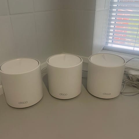 TP-Link Deco X50 5G, Mesh Wi-Fi router, AX3000 Dual Band Wi-Fi, 1 stk. 2,5 Gigabit Lan + 2 stk. Gigabit lan, Leveres med strømforsyning, 100% OK. Fast Pris: 1200 kr. + evt. fragt.