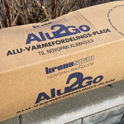 40 stk Novopan Spaandex Klimagulv vendeplader til gulvvarme. Købt hos STARK.