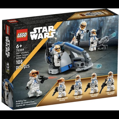 LEGO Star Wars klodsæt 75337 Clone Trooper & Battle Droid Battle Pack. Sættet indeholder minifigurer af klonsoldater og kampdroider samt byggebare køretøjer og udstyr til at genskabe scener fra Star Wars-universet. Velegnet til leg og som supplement til andre LEGO Star Wars samlinger.