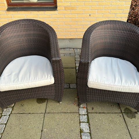 Fine lave havestole i flet. Perfekte til terrassen, især omkring et bål. Prisen er for alle 4 stole.