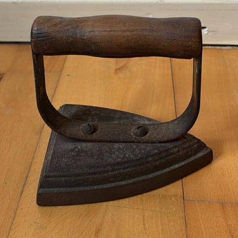 Træ strygebræt med gammelt jernstrygejern