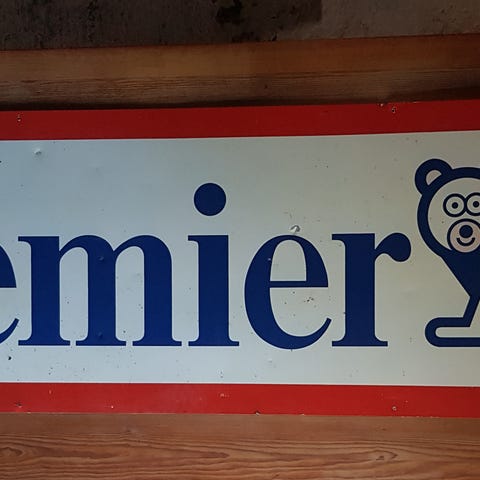 Premier is skraldespand med låg sjældent set tilsalg i særdeles god stand .premier is eksisterer ikke mere .