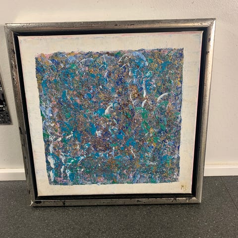 Maleri /Billede, Billede i natur farver af dyr og naturen i sort træ ramme med maleri bagpå også. Mål: 77c56x4 cm