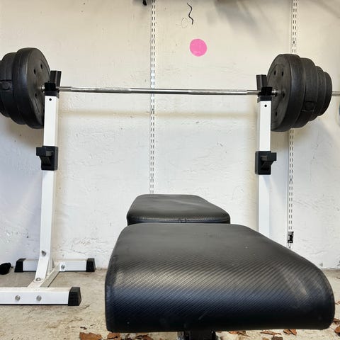Bænkpress, stang og vægtskiver - op til ca. 70 kg