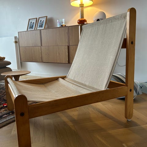 Dansk designet lænestol af Poul M. Volther model J55. Stolen er I massiv egetræ og ses oftest i teak, derfor lidt ekstra unik. Stolen er fast I samlingerne og med originale sorte hynder. # retro, stol, stole, lænestol, lænestole, dansk design, danish design, moderne, antik, vintage.