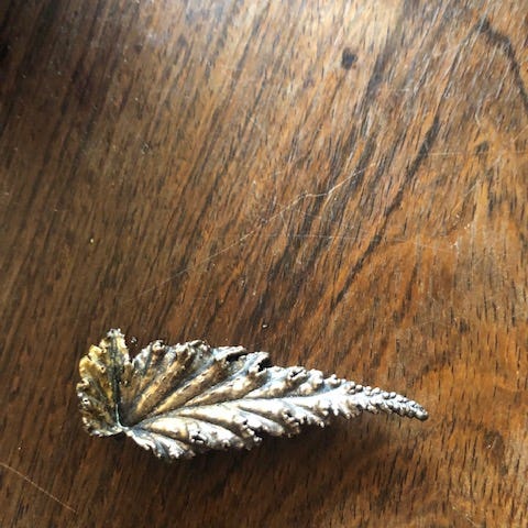 Smuk broche fra Flora Danica, Denmark, formet som et egeblad. Klassisk dansk design inspireret af botaniske planter.