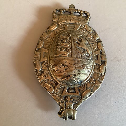 Skjoldholdere: 2 udadseende naturligt farvede løver.