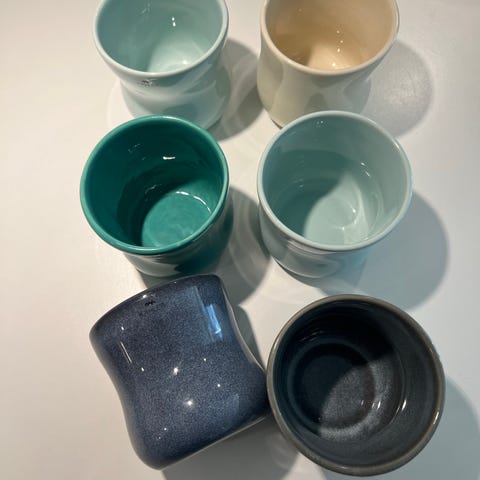 5 stk Kähler mano krus i din alm størrelse på 8-8,5 cm i højden. Alle krus har brugsspor hvilket prisen også er sat efter. Det grønne har et lille hak i kanten, og de andre har brugsspor af forskellig grad , jeg har forsøgt at fange det hele på billederne , så sørg for at se alle billederne gennem.