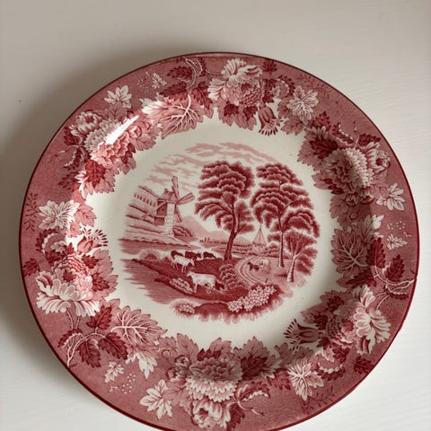 Rød engelsk fajance - Kagetallerken