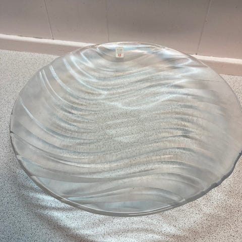 Glas, Serveringsfad, frugtfad, Salatfad, Brunch fad, Holmegaard / Skagarak, Stort og dejligt Skagarak fad med ru underside med bølget mønster fra Holmegaard