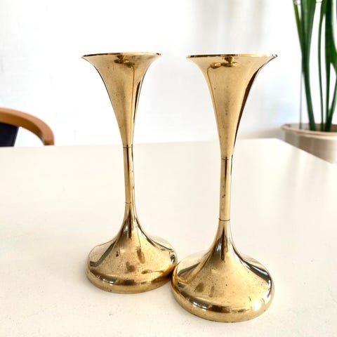 Par klassiske trompetstager i messing – Dansk design 20cm