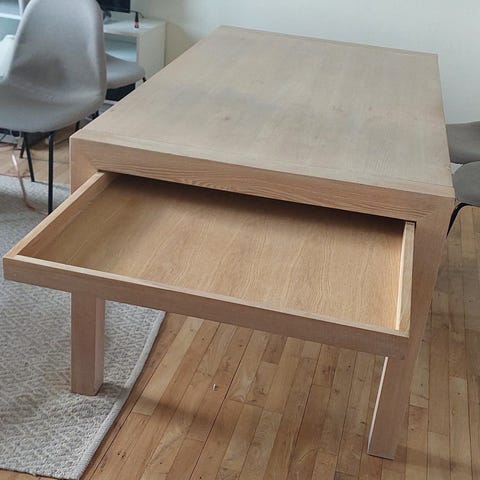 Spisebord i 3 cm. massiv ask med to tillægsplader.