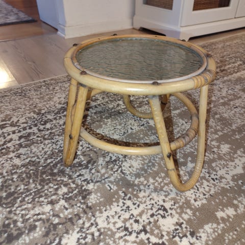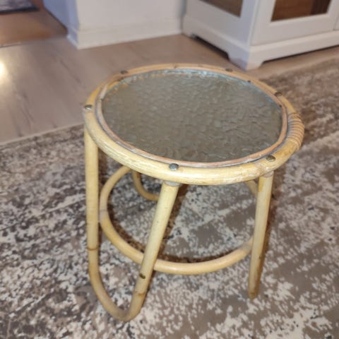 Vintage planteopsats i bambus og glas. Der forekommer aldersrelateret patina. Mål fremgår af foto.