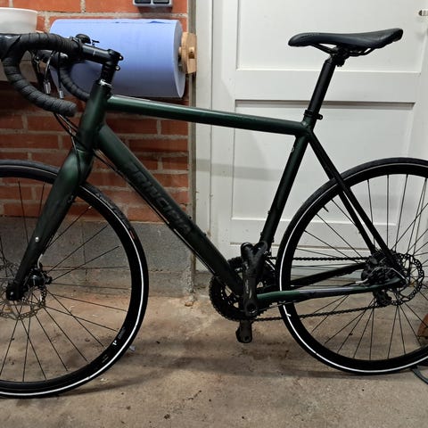 Den har netop fået et større service hvor der er blevet monteret ny kædetræk, krankboks, bremseklodser og dæk samt opsmøring og justering af hele cyklen.