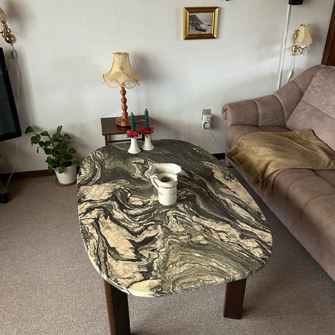 Bordet er stabilt og i pæn stand. Det giver et eksklusivt look til stuen og passer godt til både moderne og klassisk indretning.