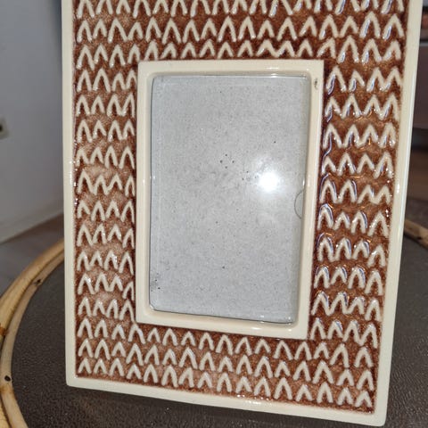 Smuk fotoramme i glaseret keramik. Mål fremgår af foto.