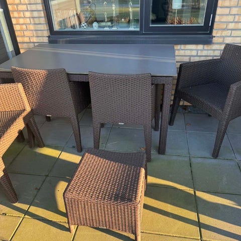 Hvidt trip trap havebord i generel god stand. Der er dog lidt opskalning i malingen på bordpladen. Bordet har stået indendørs de sidste par år og er passet godt på