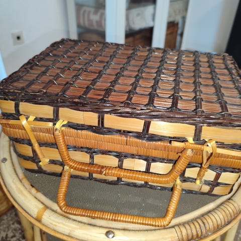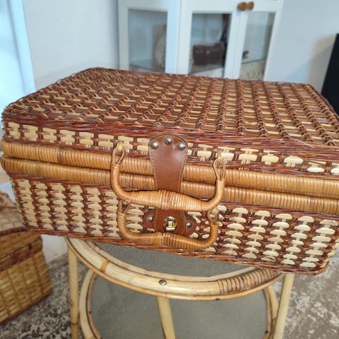 Flot vintage kuffert i flet. Mål fremgår af foto.