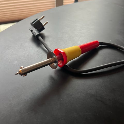 Solomon loddekolbe på 30W med rød plastikhåndtag. Udstyret med spids loddespids og netledning med stik til 230V AC. Velegnet til almindelige loddeopgaver i elektronik og hobbyarbejde, hvor der er behov for en kompakt og let håndterbar loddekolbe.