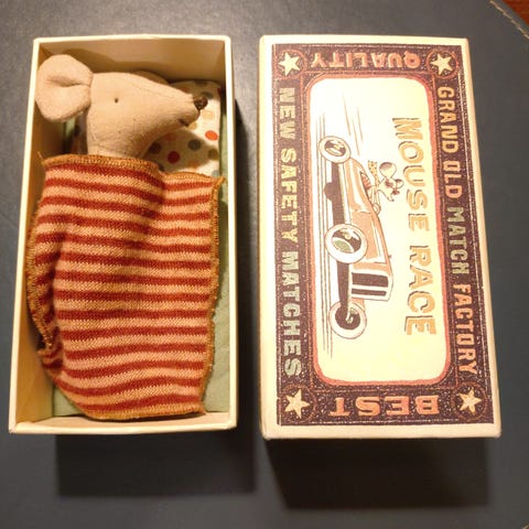 Maileg mus i tændstikæske legetøjsfigur.