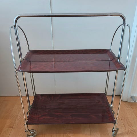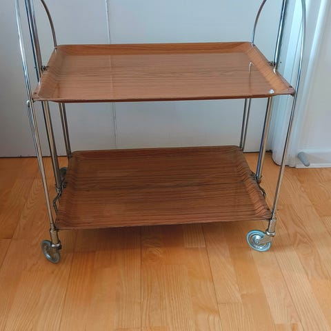 Produktet er et barvogn med metalramme og træhylder. Den har glas og en isspand.,Afhentes i:,Røde Kors Kolding (621),Bemærk at mail, chat og beskeder ikke besvares, og varen skal købes på knappen "Gå til varen"