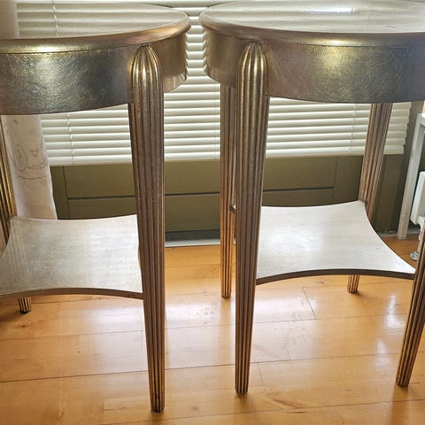 The-bord eller hjørnebord. Det har to hylder og to skuffer med runde håndtag. Det er fremstillet af mørkt træ og har et klassisk design. Fine detaljer.,Afhentes i:,Røde Kors Tuborgvej / København NV (101),Bemærk at mail, chat og beskeder ikke besvares, og varen skal købes på knappen "Gå til varen"