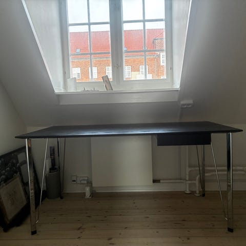 Fritz Hansen Arne Jacobsen bord med kvadratisk plade og stålstel