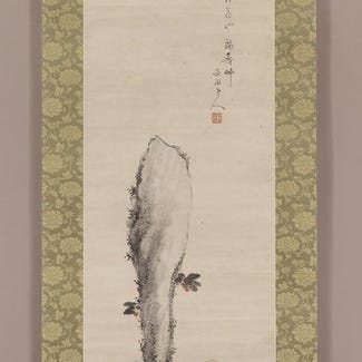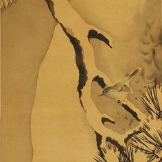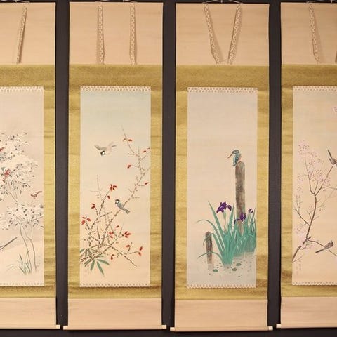 Very fine painting "Bird and rose", signed - including inscribed tomobako - S...