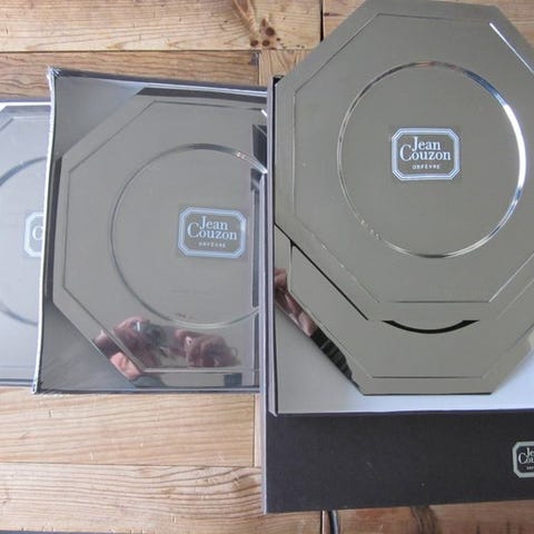 Fremstillet i sølvplet og indgraveret på hvert underlag står teksten "Silver Plate 99,9".