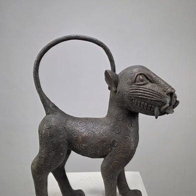 Dette bronzekavaler tilhører Kotoko-folket, en etnisk gruppe i Tchad og ved Tchadsøens bassin, anerkendt for deres håndværksmæssige tradition og symbolske skulpturer. Kotoko skaber bronzefigurer for at repræsentere personer, ledere eller hestefigurer, der afspejler den sociale hierarki, prestige og forbindelsen til historie og forfædre. Disse værker er dybt forankrede i kulturen og de rituelle praksisser i fællesskabet.
